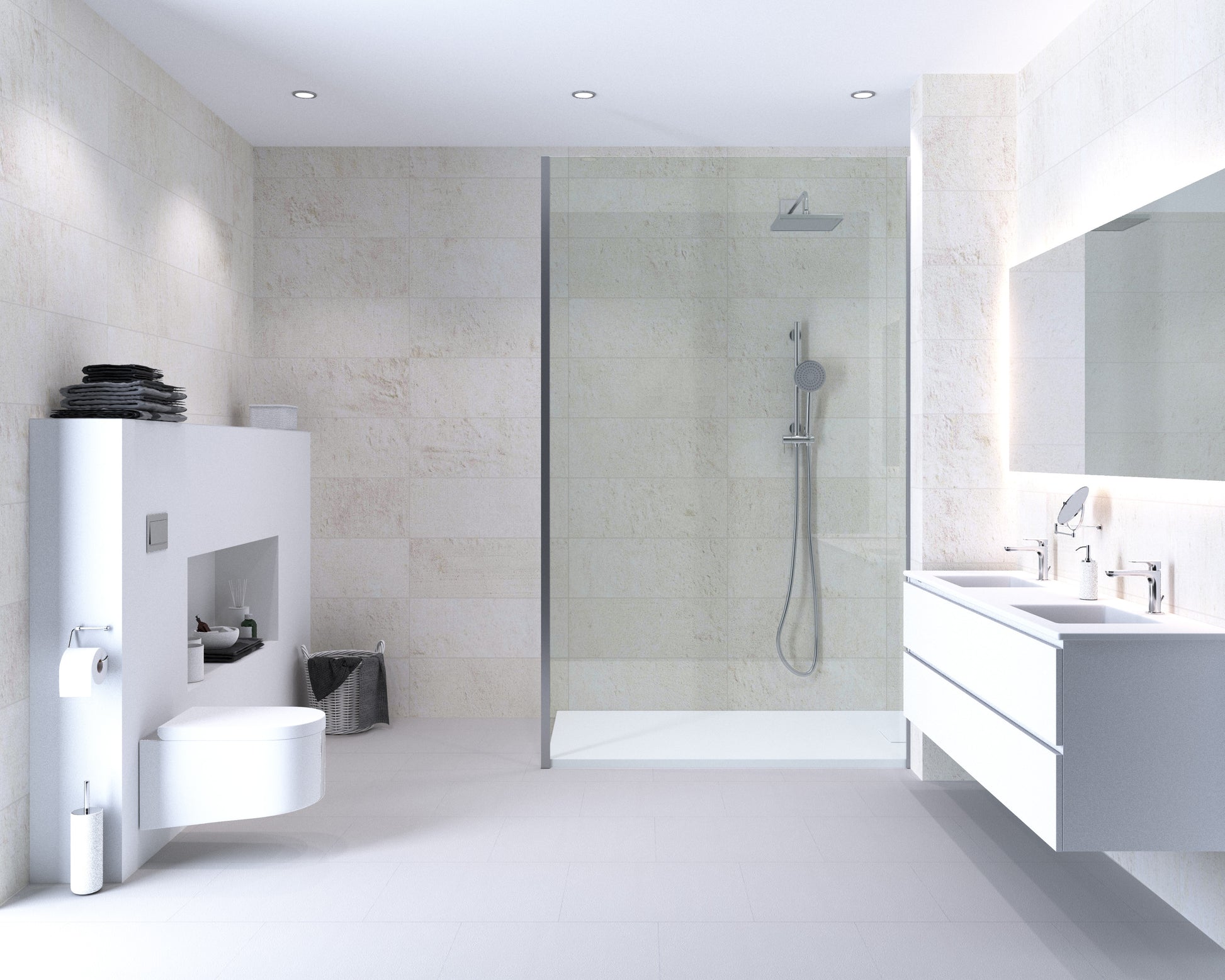 Aqua-Step- ALL IN ONE - Wasserdichte Wandpaneele und Bodenpaneele für Badezimmer - French Limestone - 6 Paneele (2,34m²)